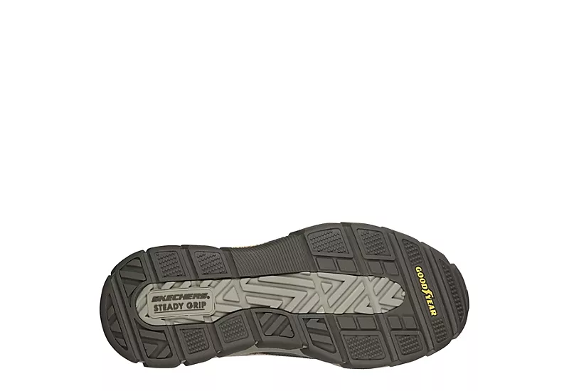 Find out what it really means to relax in the Skechers Respected – Loleto men’s sneaker. With a canvas upper featuring suede trim and bungee laced front for easy access, these slip-on sneakers offer a wider fit for happy feet. The Air Cooled Memory Foam footbed with Goga Mat Arch comforts your feet while the synthetic & Goodyear rubber sole support your steps.